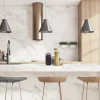 Shards of grey diagonal veins blended into a white base, Kitchen Benchtop Calacatta Vagli is an elegant and beautiful piece that mimics marble closely. Its veins are large and prominent, making Kitchen Benchtop Calacatta Vagli the perfect stand out piece. Use Kitchen Benchtop Calacatta Vagli for a wide variety of surfaces including kitchen bench tops, counter tops, splash back, bathroom vanity, bathroom walls and more.