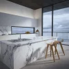 Porcelain is a strong, durable and heat resistant surface which can be used for both outdoor and indoor needs. Whilst emulating the look and feel of marble closely, Porcelain has added practicality, including being easy to maintain, and withstanding outdoor weathering.