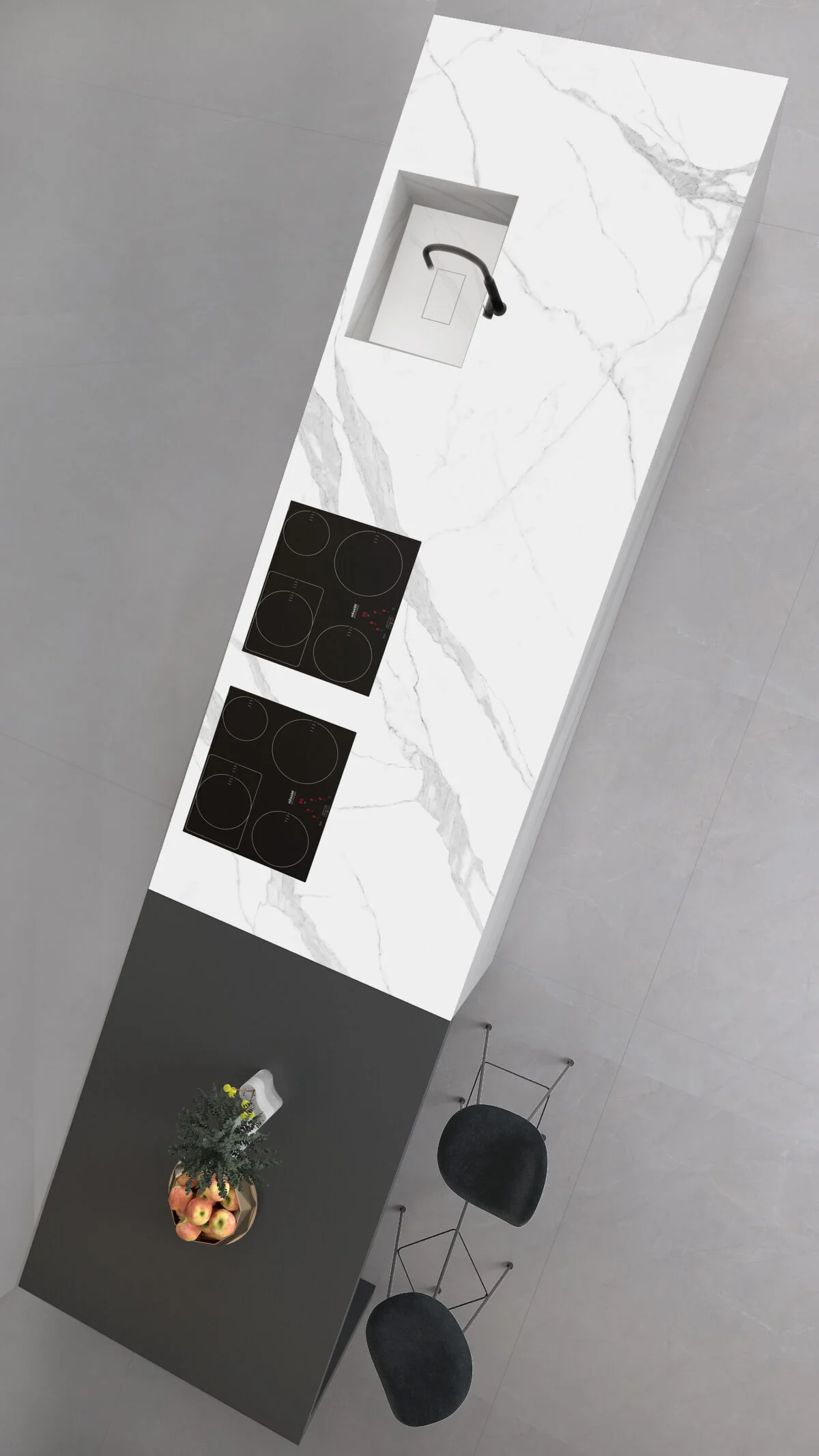 Porcelain is a strong, durable and heat resistant surface which can be used for both outdoor and indoor needs. Whilst emulating the look and feel of marble closely, Porcelain has added practicality, including being easy to maintain, and withstanding outdoor weathering.