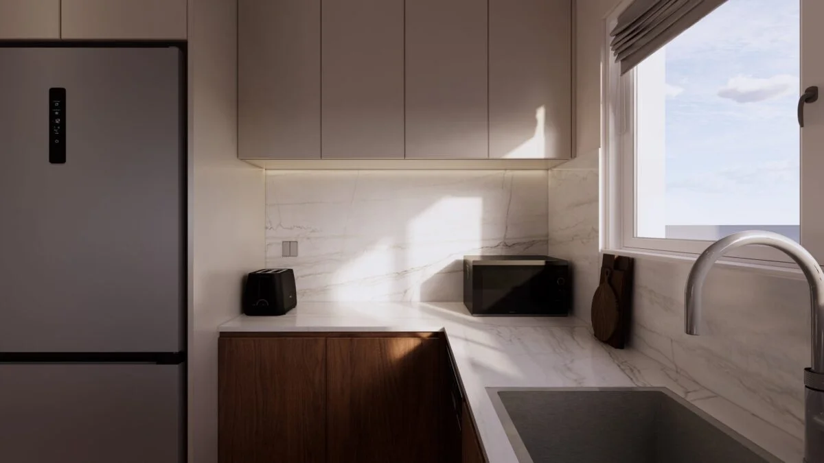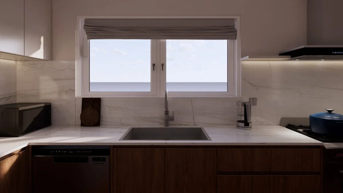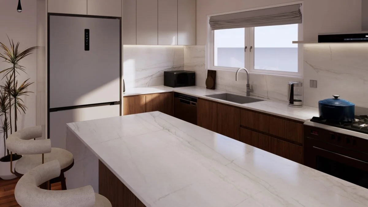 Kitchen Benchtop Montblanc has a soft matt white base with unique striated patterns that run throughout this piece. The patterns are thoughtfully designed to look as natural as possible and mimics the look of marble closely, whilst having the added practicality and durability for everyday use.