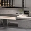 Inspired by cobbled streets, pebbles, rocks and stones, Kitchen Benchtop Montreal has a delicate light brown surface, and unique patterns of different materials that emulate the liveliness of small street lanes. Kitchen Benchtop Montreal can be used for a wide variety of surfaces including kitchen bench tops, counter tops, splash back, bathroom vanity, bathroom walls and more.