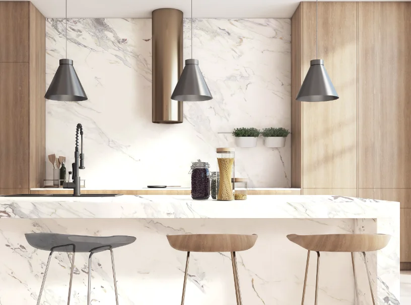 Porcelain is a strong, durable and heat resistant surface which can be used for both outdoor and indoor needs. Whilst emulating the look and feel of marble closely, Porcelain has added practicality, including being easy to maintain, and withstanding outdoor weathering.