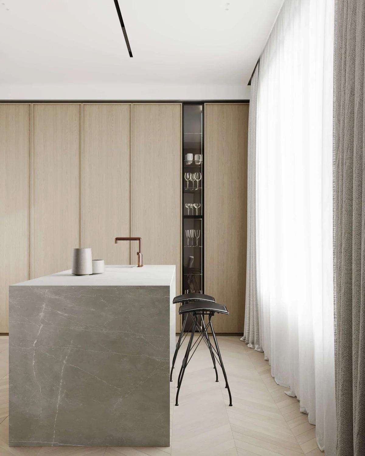 Porcelain is a strong, durable and heat resistant surface which can be used for both outdoor and indoor needs. Whilst emulating the look and feel of marble closely, Porcelain has added practicality, including being easy to maintain, and withstanding outdoor weathering.